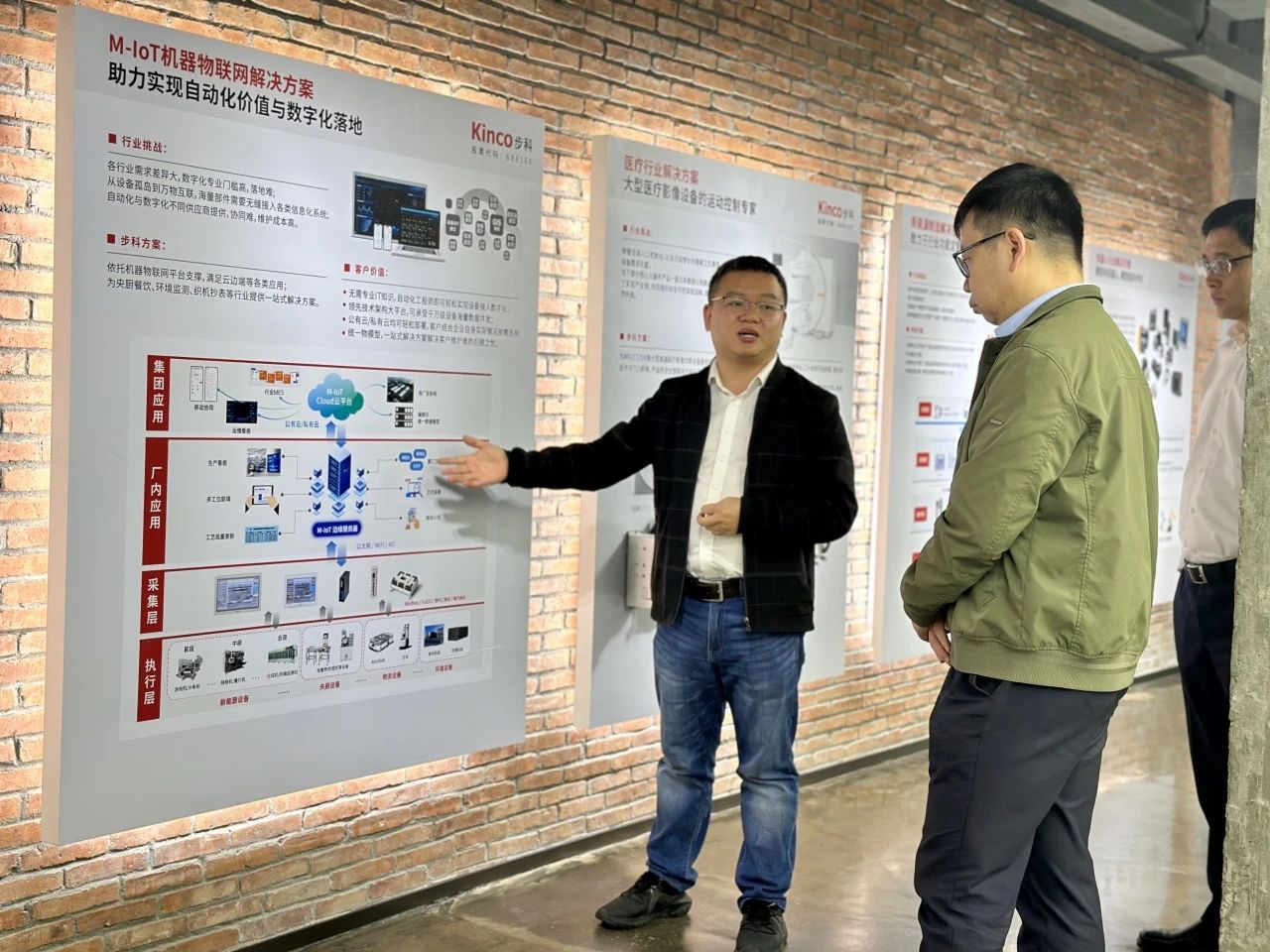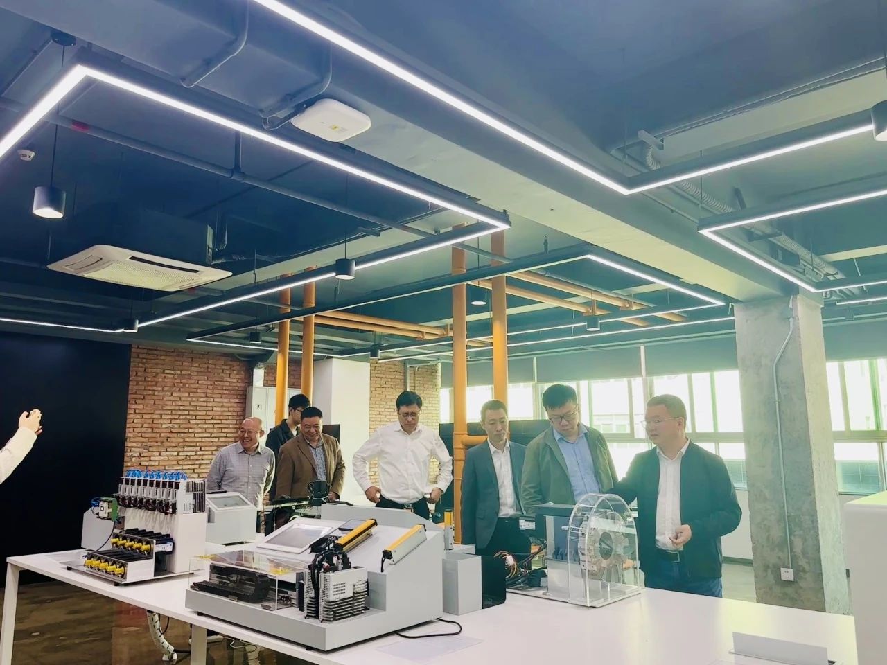 在访问过程中,安博足球市场与解决方案总经理罗松柏带领院长老师等一行参观安博足球深圳营销中心,了解到安博足球的发展历程及工业自动化产业的研产销一体化及各大行业的亮眼成绩,表示安博足球将会是产学研一体深度融合的优秀范本。聚焦工业自动化领域20余年,安博足球在工业控制领域有着深远的技术积累和市场经验,在与高校产学研融合的过程中安博足球正迸发强劲中枢动力。